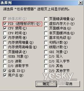 最简单的一种就是利用系统自带命令。例如,你通过工具已经确认了混入议事厅里面的“奸细”就是system.exe,在任务管理器最上方的“查看”下拉菜单中选择“选择列”项,在弹出窗口中勾选“PID(进程标志符)”(图2)。