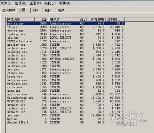 Windows自带的任务管理器是无法同时结束两个进程的,所以我们还是要用工具来清除双进程病毒,用的工具还是《冰刃》。先确定一个病毒进程,然后用上述方法找到守护进程的PID。