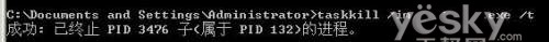 看到这里,你会问:PID是什么?为什么我要看到它?PID是进程的身份标志(PID=进程ID),相当于进程的身份证号码。通过PID,我们可以很快找到有血缘关系的进程。打开CMD窗口,输入“taskkill /im system.exe /t”命令。