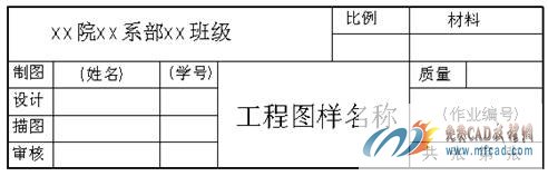 学生在作业时,采用图1-6所示的标题栏格式。