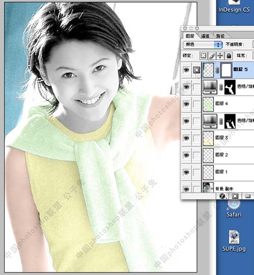 第五,上色大体思路我认为仍然是从整体到局部,再由局部到整体。比如这张照片。我们要先从整体出发,考虑好这个MM的环境,和她自身的特质。健康阳光,很有活动。这时我们就要为他设计色彩。就这张照片而言,我个人觉得应该以清新的浅色为主,淡黄,淡绿的搭配由此产生,在这幅图中,环境色很少,这时我们可以把主要精力放在人物上,而环境色只要能和人物衣服色搭配合适就行了。设定完总体的颜色。再进行实际的局部上色。中间的步骤下面会有一些截图,希望大家看了能有所领悟,具体的我不细说了。因为已经有很多这方面的教程了。最重要的一点是要细心。我用的方法是最笨的方法。就是一块块的用钢笔扣出来,头发部分用配合通道来扣。然后一个图层一个图层的上色。先填充一层基本色,然后再用喷笔上明暗调,上色的图层所用的图层模式为[颜色]。当这些都进行完以后。大体上颜色就上完了。有些盟友这时就交稿了。慢着。这还没完。因为我们一部分一部分的上色。最后的成品肯定不是非常的自然。这是肯定的。所以最后还要有一步,在最顶层加一个色彩整体调整层。我的习惯是用[曲线]调整层。“便宜量又足,曲线,我一直用它??!”。这时才算是完工了。总之知识是死的,人是活的,不要死背教程。 |