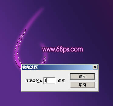 5、调出当前图层选区,选择菜单:选择 > 修改 > 收缩,数值为1,如图7,确定后新建一个图层,填充相同的紫色:#DB40E0,取消选区后把图层混合模式改为“颜色减淡”,效果如图8。