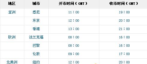 外汇市场是指由银行等金融机构、自营交易商、大型跨国企业参与的,通过中介机构或电讯系统联结的,以各种货币为买卖对象的交易市场。它可以是有形的---如外汇交易所,也可以是无形的---如通过电讯系统交易的银行间外汇交易。据国际清算银行最新统计显示,国际外汇市场每日平均交易额约为1.5万亿美元。 目前,世界上大约有30多个主要的外汇市场,它们遍布于世界各大洲的不同国家和地区。根据传统的地域划分,可分为亚洲、欧洲、北美洲等三大部分,其中,最重要的有欧洲的伦敦、法兰克福、苏黎世和巴黎,美洲的纽约和洛杉矶,澳洲的悉尼,亚洲的东京、新加坡和香港等。 每个市场都有其固定和特有的特点,但所有市场都有共性。各市场被距离和时间所隔,它们敏感地相互影响又各自独立。一个中心每天营业结束后,就把订单传递到别的中心,有时就为下一市场的开盘定下了基调。这些外汇市场以其所在的城市为中心,辐射周边的其他国家和地区。由于所处的时区不同,各外汇市场在营业时间上此开彼关,相跟着挂牌营业,它们相互之间通过先进的通讯设备和计算机网络连成一体,市场的参与者可以在世界各地进行交易,外汇资金流动顺畅,市场间的汇率差异极小,形成了全球一体化运作、全天候运行的统一的国际外汇市场。其简单情况可见下表: