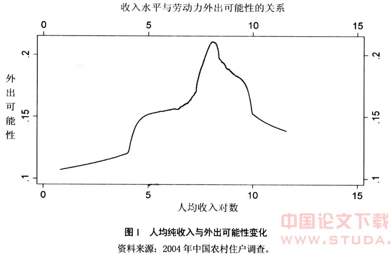假设8:家庭绝对收入水平与家庭成员外出的可能性成正比: