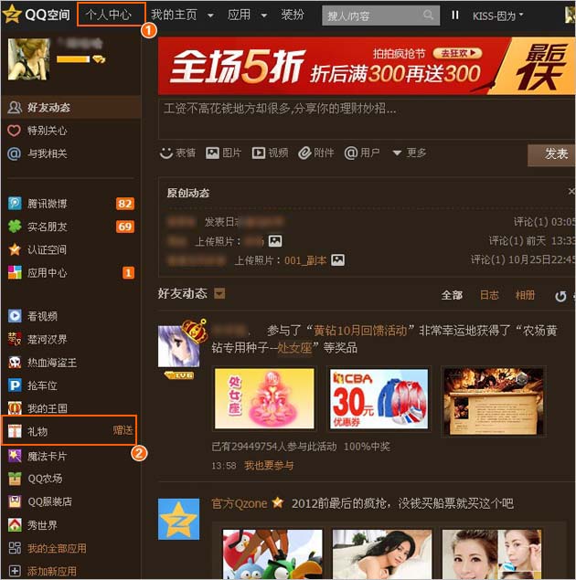 QQ空间里,礼物入口有哪些?